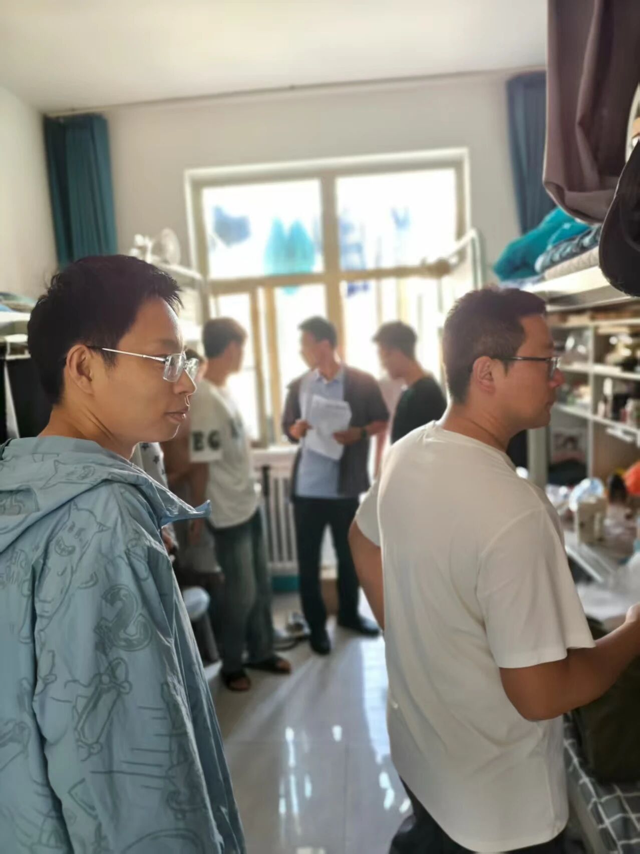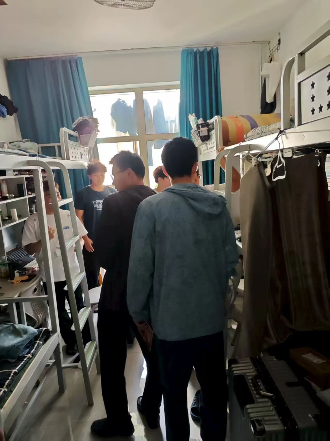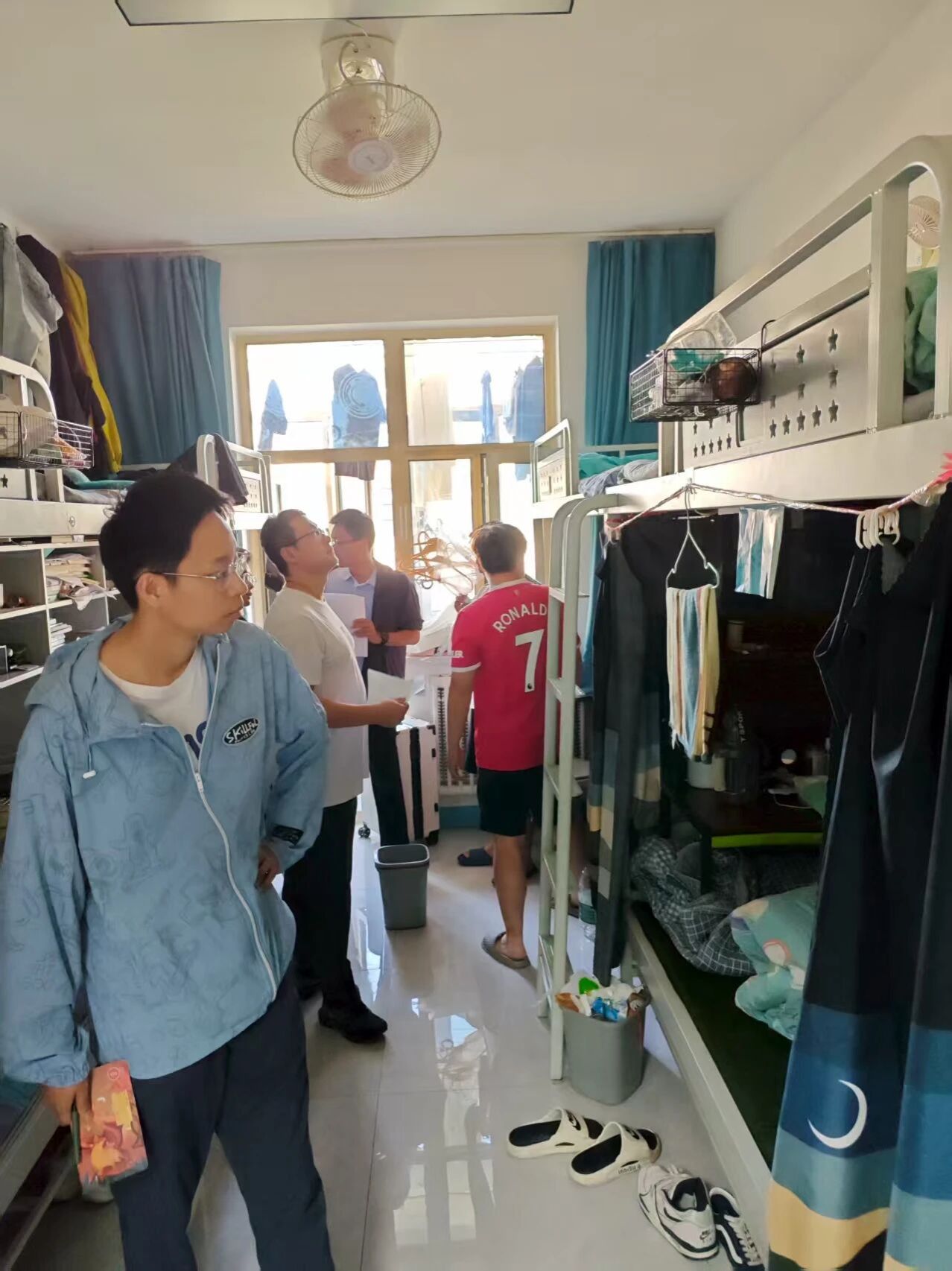 排查现场,老师们不仅细致检查安全隐患,还亲切与同学们交流。询问大家开学后生活是否适应、宿舍设施有无使用问题,叮嘱注意用电安全与作息规律,耐心倾听学业困惑与生活需求,用关怀话语拉近与学生距离,让安全排查既严又暖,切实筑牢校园安全与学生关怀双重防线。