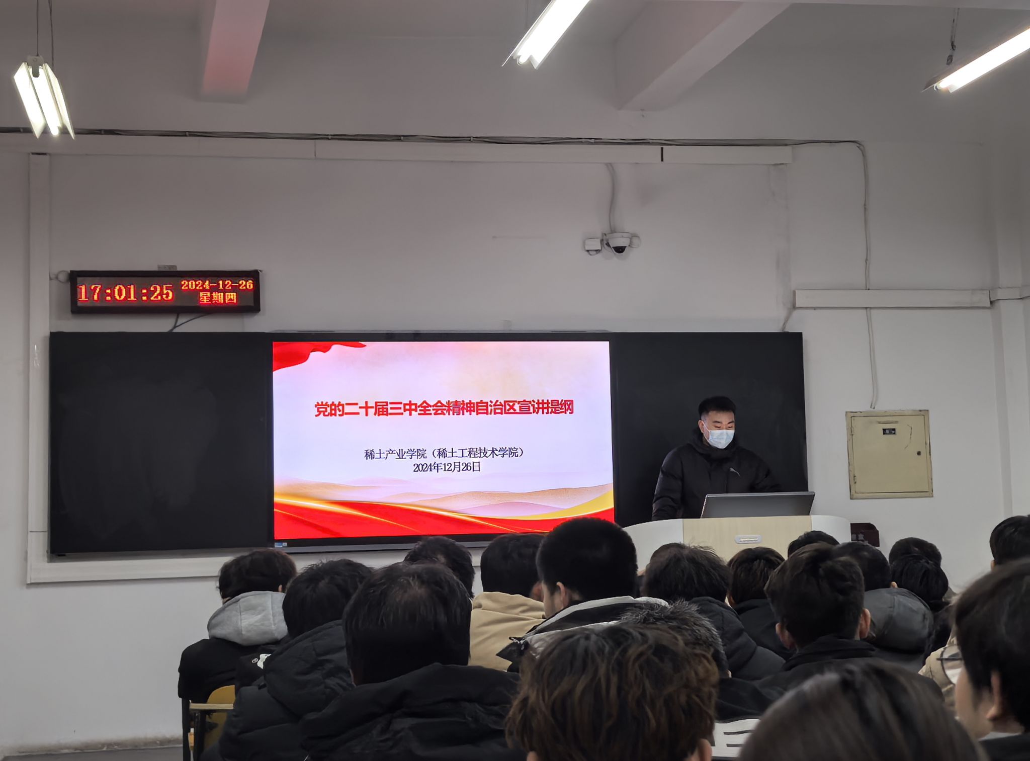 为持续深入学习领会党的二十届三中全会精神,引导在校学生深刻领会全会的重大意义和丰富内涵,切实把全体学生的思想和行动统一到全会精神上来,根据校党委及院党委安排部署,我院宣讲团成员面向本学院全体学生开展党的二十届三中全会精神宣讲。