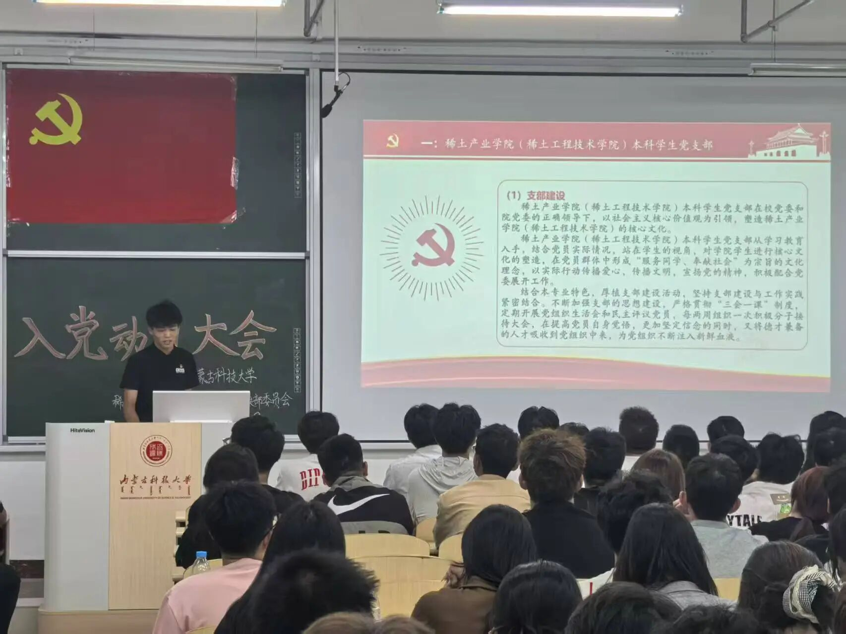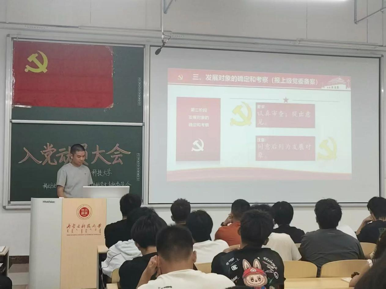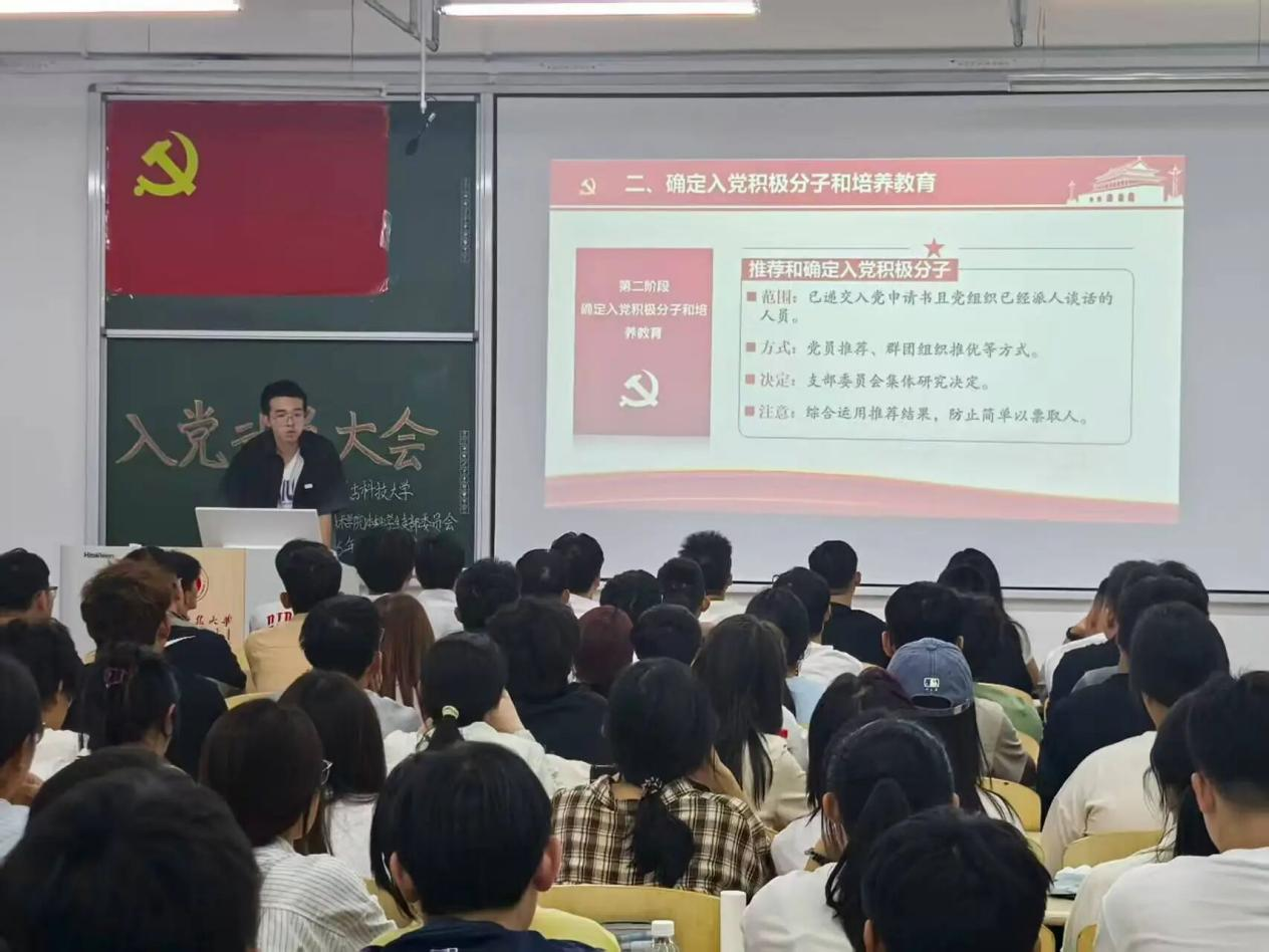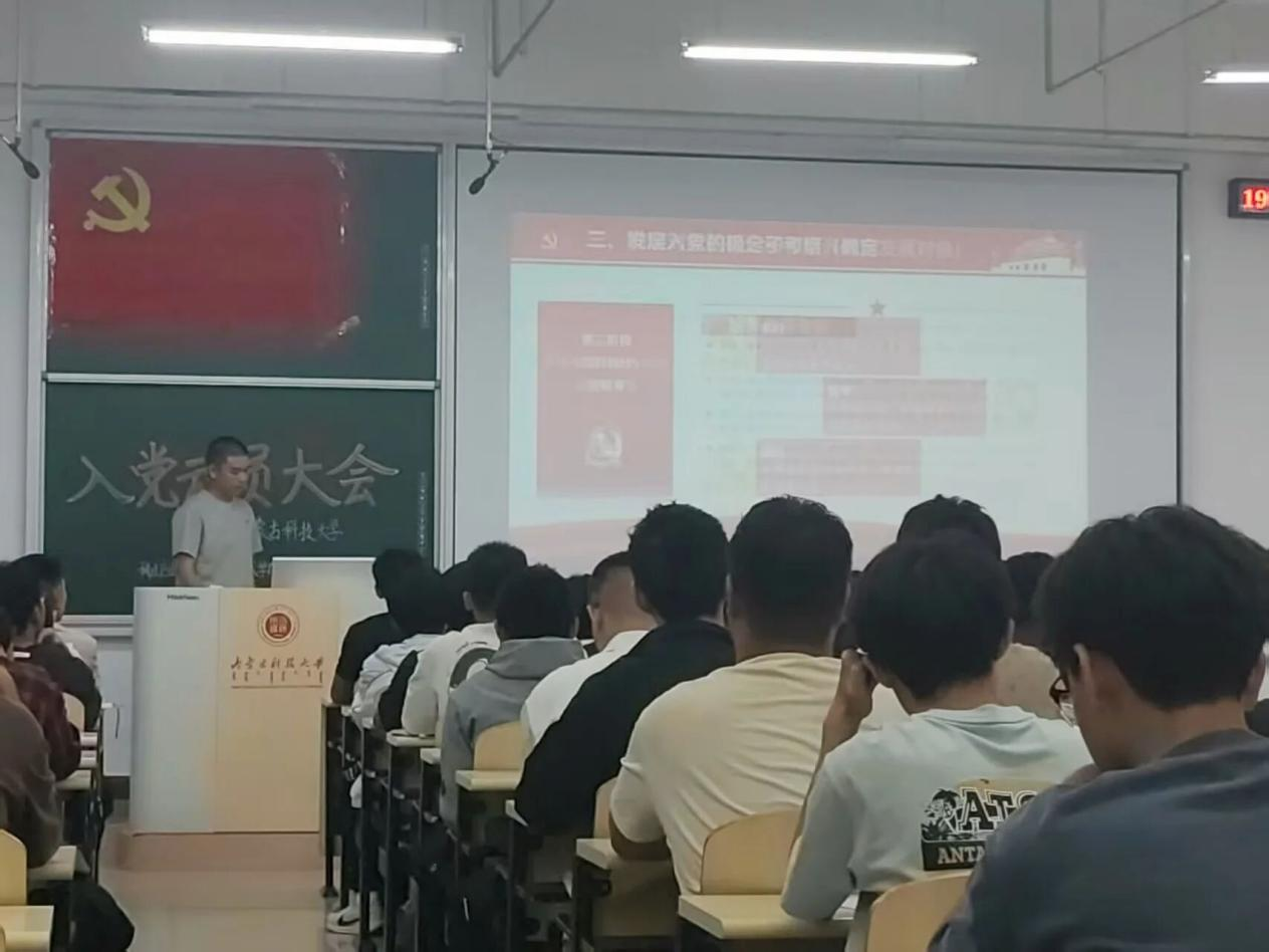 为强化同学们的党性教育,保障党的基层组织建设与党的纯洁性教育工作有序推进,进一步筑牢入党积极分子主动向党组织靠拢的坚定志向与决心,2025年9月10日晚19:30,太阳成集团tyc522cc(稀土工程技术学院)本科学生党支部在逸夫楼G202与G203教室组织召开入党动员大会。