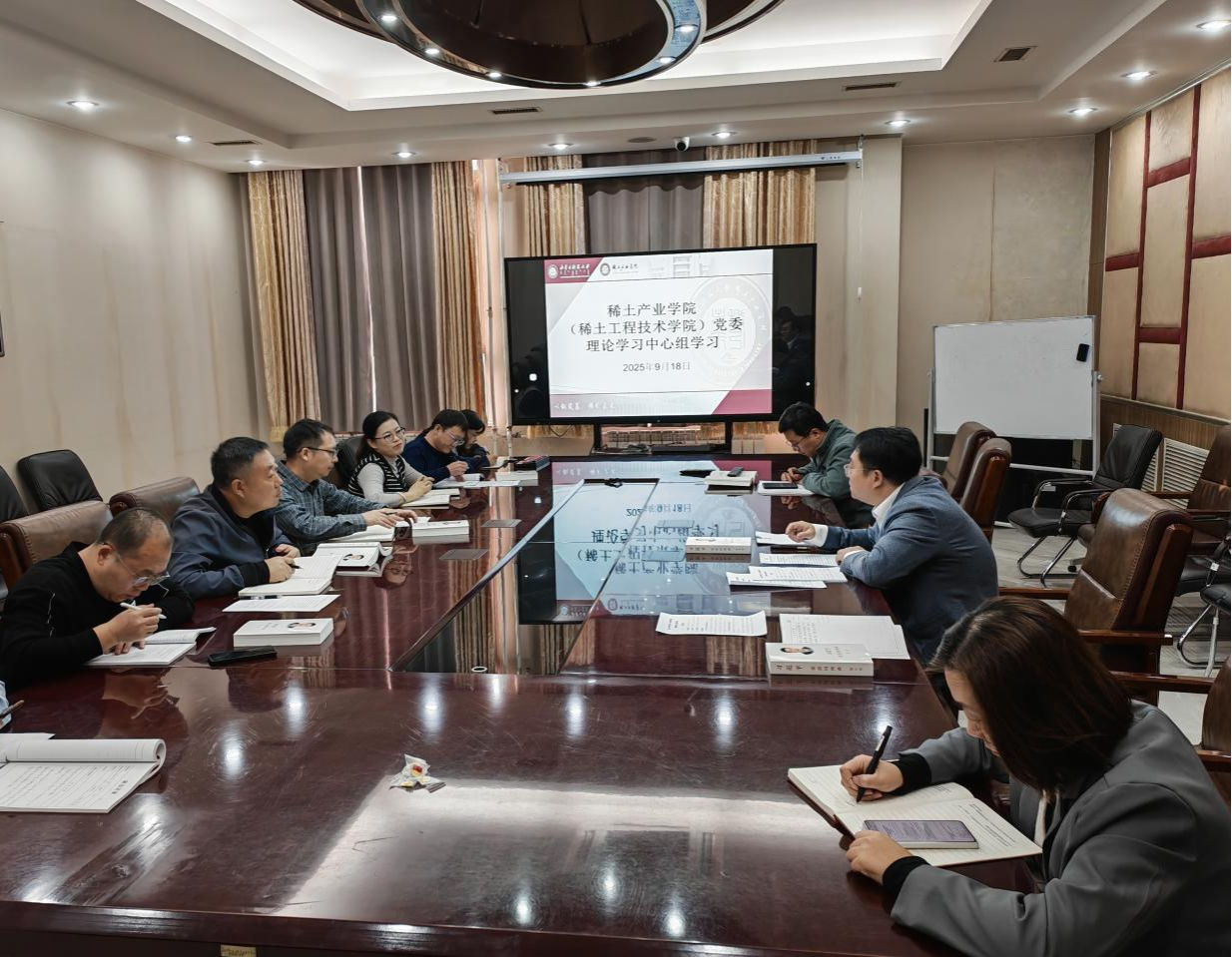 为深入学习贯彻习近平新时代中国特色社会主义思想,全面落实党中央决策部署及学校党委工作要求,2025年9月18日下午15:00,太阳成集团tyc522cc(稀土工程技术学院)在A301会议室召开党委理论学习中心组学习会。校党委委员、副校长、院党委书记张新房同志主持会议,学院党委理论学习中心组成员、各支部书记及系部办公室负责人等16人悉数参会。