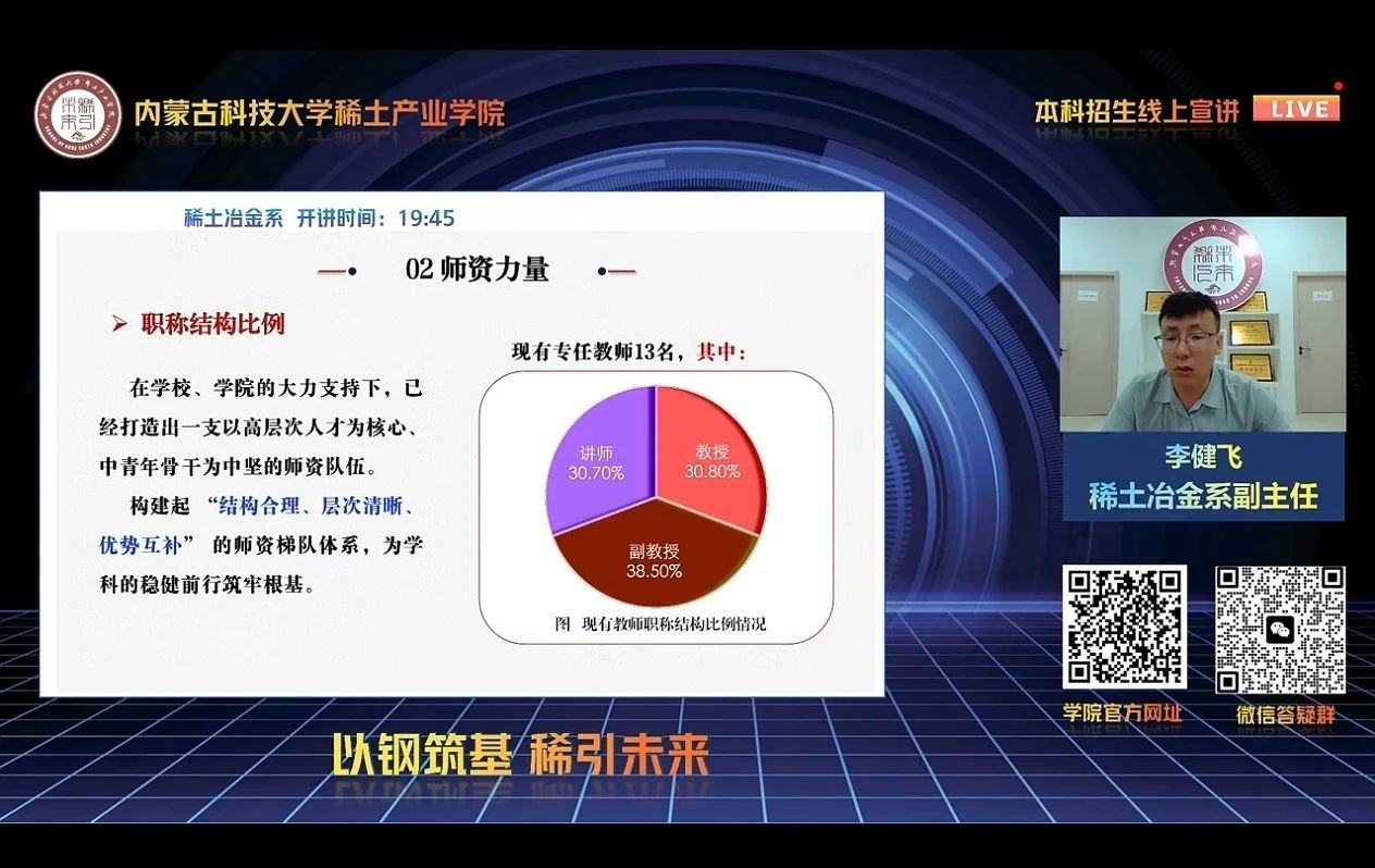 学院始终将党建工作与招生育人、就业服务深度融合,以 “党建 +” 模式打通人才培养 “入口” 与 “出口” 双环节:招生期间,由党员教师带头组建 7 支招生宣传队,充分发挥党支部战斗堡垒作用和党员先锋模范作用,从政策解读到志愿指导、从校园宣讲到线上咨询,党员教师全程冲锋在前,累计开展线上招生直播 16 场,用专业与热情架起连接考生与学院的 “连心桥”,以党建引领确保招生工作公平、公正、公开,让每一份报考信任都得到暖心回应;同时,学院领导高度重视就业工作,围绕 “稳就业、促就业” 目标多次召开就业推进会,针对不同专业就业趋势、企业用人需求、毕业生职业规划等关键问题展开专题研讨,牵头建立 “专业教师 + 党员骨干 + 企业导师” 就业指导团队,提前对接北方稀土、包钢集团等行业龙头企业搭建实习就业平台,形成 “招生 — 培养 — 就业” 闭环育人链条,以党建引领实现招生质量与就业服务双提升。