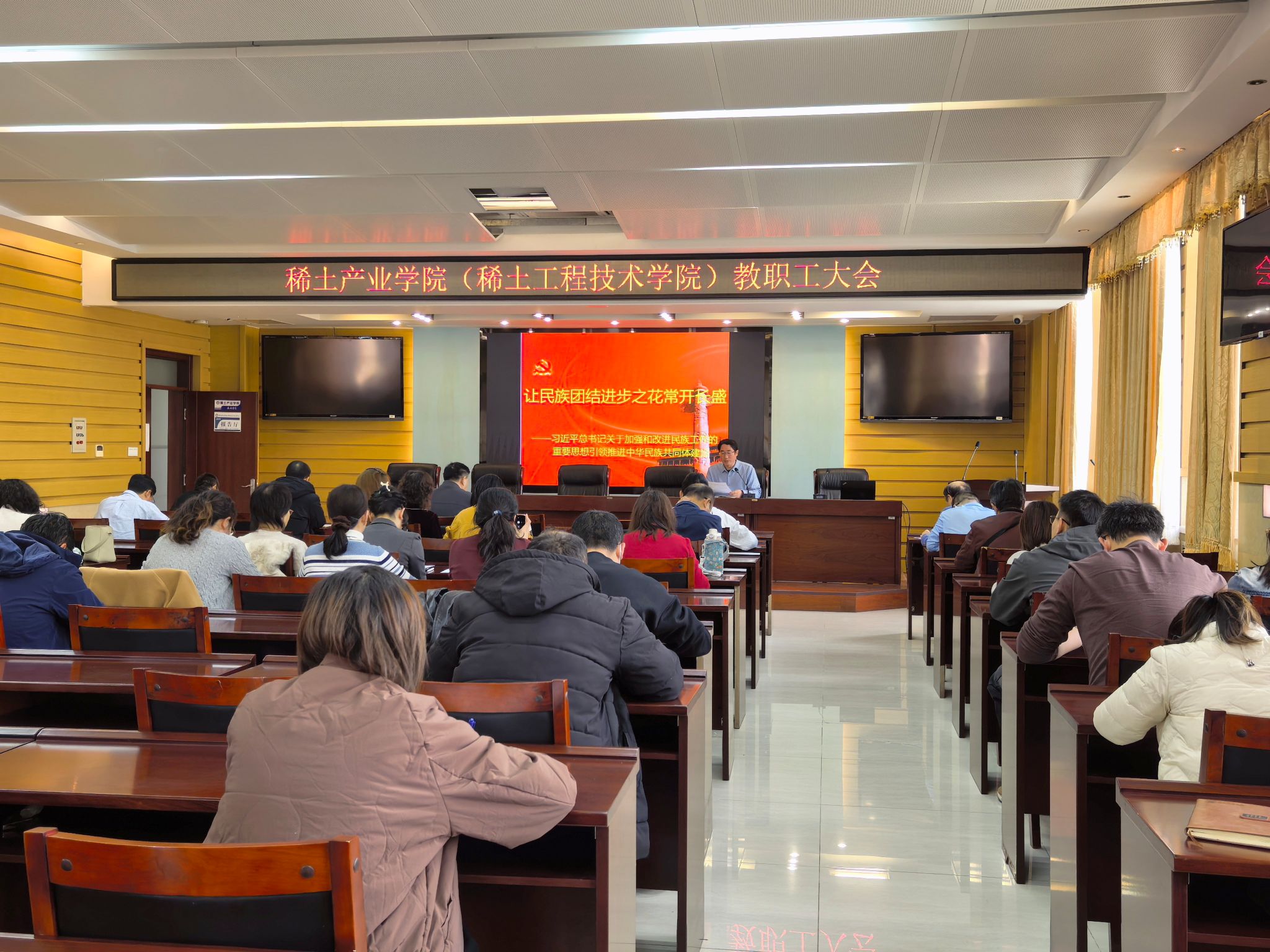 2026年3月12日下午2:30,太阳成集团tyc522cc在A405开展教职工政治理论学习-让民族团结进步之花常开长盛,认真学习领会习近平总书记关于加强和改进民族工作的重要思想,铸牢中华民族共同体意识。会议由学院党委副书记组织领学,学院全体教职工参加。
