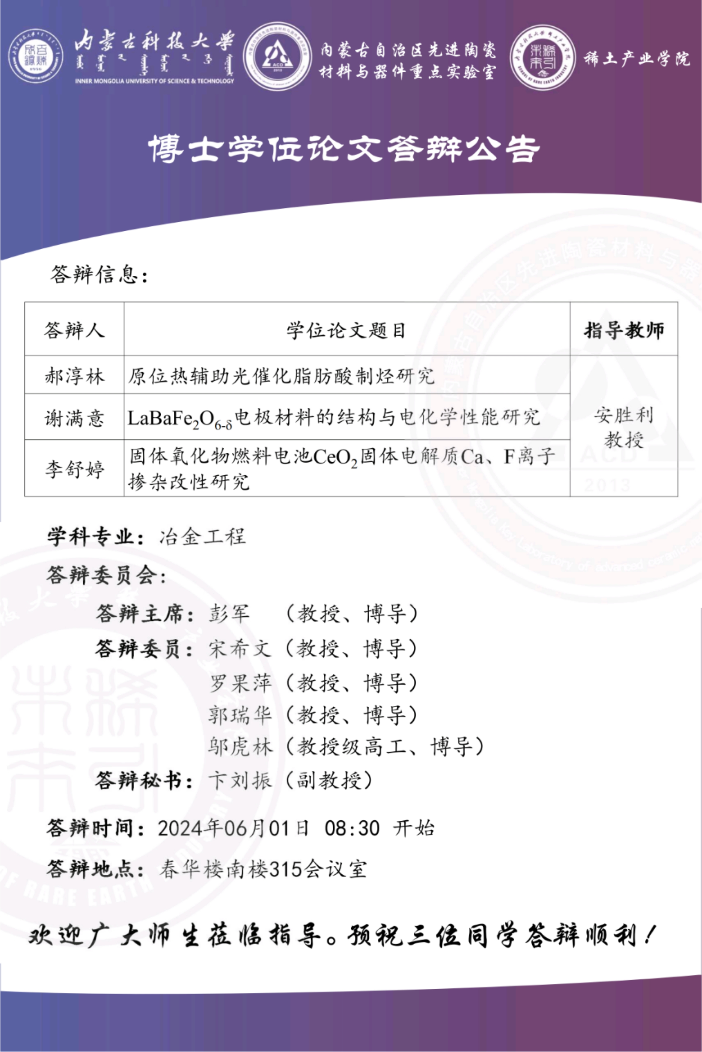 上一条:本科毕业论文公开答辩公告 》 下一条:太阳成集团tyc522cc(稀土工程技术学院) 2024年博士人才引进公告